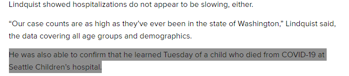 本周二,一位卫生官员核实西雅图儿童医院内有一名儿童死于COVID-19。