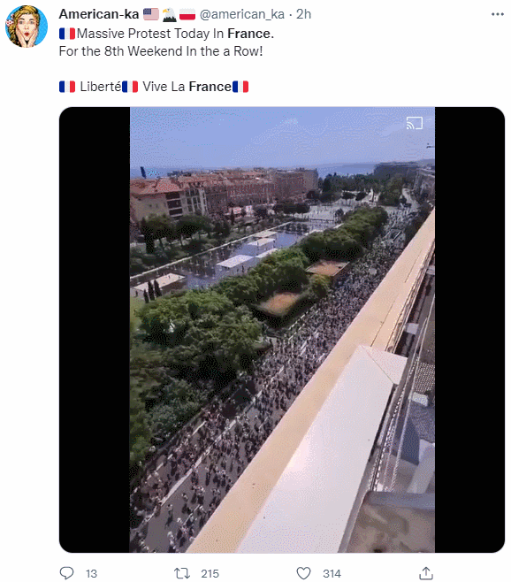 据悉,法国人为了反对该国实施的疫苗护照计划,已经连续8周举行大规模抗议游行,而且一次比一次猛烈。最近一次,就发生在今天9月4日。