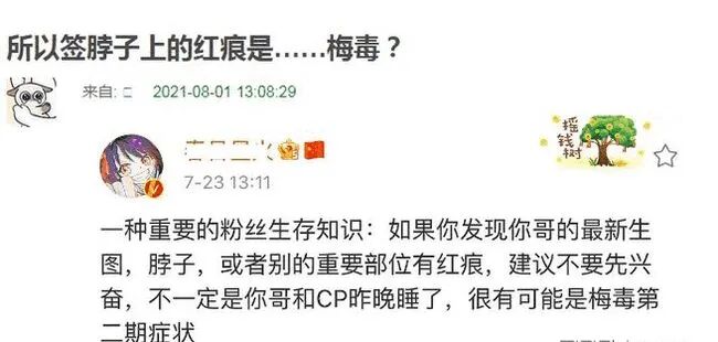 此前吴某进去后,就有人扒出,他上节目的时候,脖子后面就有红色印记,被猜测是患上了梅D。