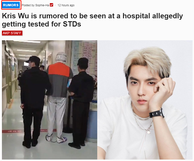 近日有网友在北京某医院目击疑似是吴某戴着脚镣,被警方带往看皮肤科,而该科医生的专门项目是“性病”。