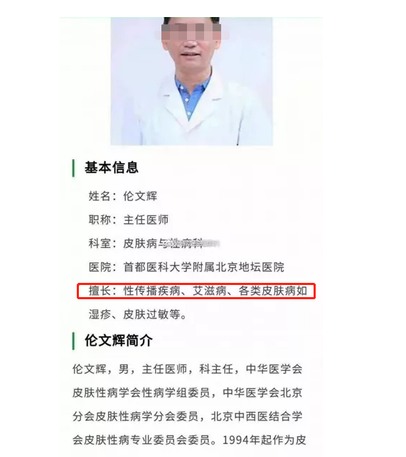值得一提的是,北京地坛医院特色科别为感染病科与皮肤性病科,主治医师伦文辉,