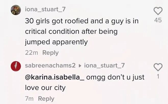 坏消息最先是从TikTok、推特等社交媒体流出,传在 9 月 6 日开始到周日结束的迎新周期间,该大学里有30名女学生被下药并遭到性侵犯。
