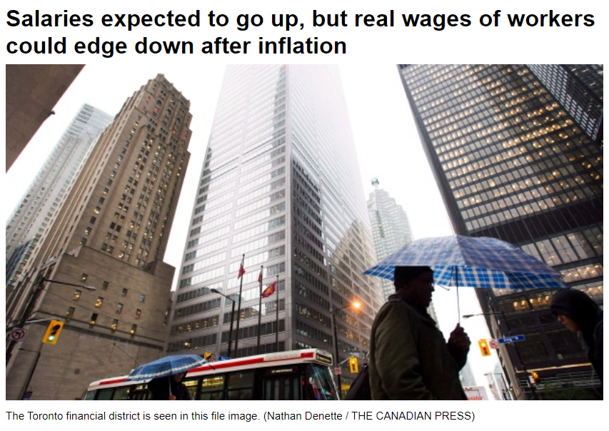 据今天公布的新调查和数据, 明年加拿大的工资预计还会上涨, 但打工族不太可能获得真正的加薪, 因为通货膨胀的幅度 可能会侵吞工资增长。