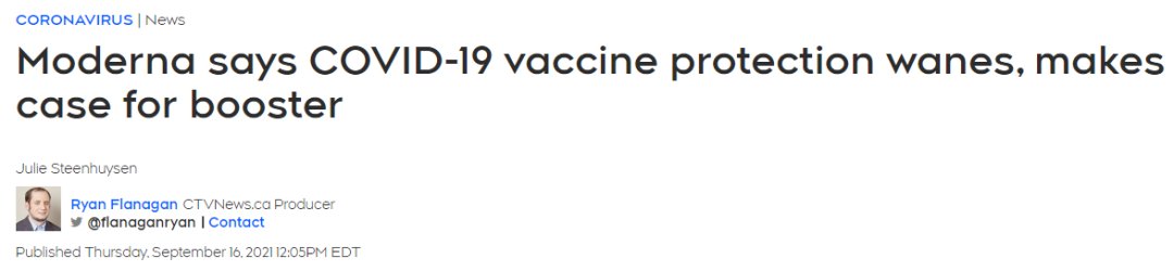 同为美国主要疫苗 供应药厂的莫德纳, 也在昨日公布了数据数据, 显示其疫苗免疫力亦随时间而减弱。