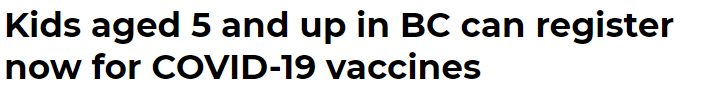 需要注意的是,目前BC省和加拿大还没有批准对5至11岁儿童接种疫苗,所以现在能做的只是提前注册占好名额,但这至少意味着儿童现在可以迈出接种疫苗的第一步了。