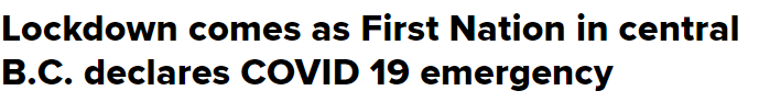 在BC省中部,一个原住民社区今天突然宣布进入紧急状态,禁止在五个社区当中进行非必要的旅行和集会。由于新冠病例激增,社区中每天都有两三名成员新冠阳性,当地已有至少6人死于病毒。
