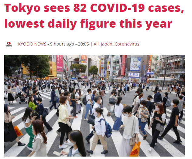 根据日本放送协会(NHK)10月9日的报道,日本东京都在过去的24小时内只有新增82例新冠确诊病例,创去年10月19日以来新低。