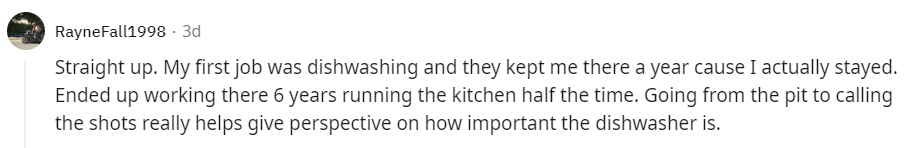 我第一份工作就是洗碗工..做了1年以后,我继续留下了,在厨房做了6年。其实洗碗工这个工作对后厨非常重要!