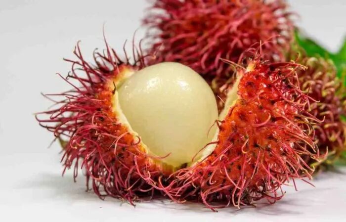 红毛丹又名毛荔枝,属于大型热带水果,味道类似于荔枝,富含丰富的维生素、氨基酸、碳水化合物和多种矿物质。