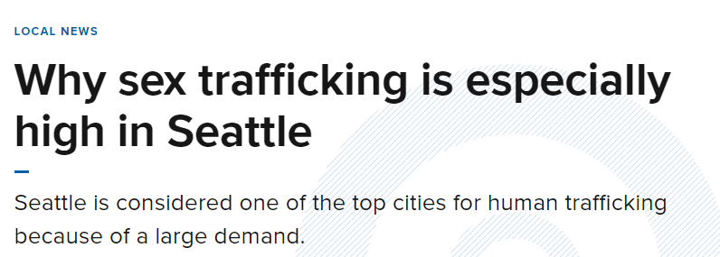 罪恶之城调查显示,西雅图是非法性交易最多的城市之一,金县每年有500至700名未成年人被迫卖淫,西雅图自2007年以来一直致力于打击人口贩卖。终止奴隶制和人口贩运企业执行董事兼首席执行官马尔·布雷特曼表示:“年轻人被迫卖淫,其中包括未成年人,而年纪大的就被卖做劳工,疫情反而加剧了贩卖人口,因为需求不降反升。”