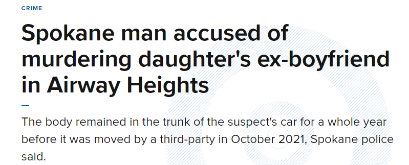 案件回顾让我们先来回顾一下整个案件的经过。一名60岁的斯波坎男子在承认了杀害女儿男友后锒铛入狱,并表示在一年前这个19岁男子将自己的女儿卖给了西雅图一个性交易组织。自己将女儿救出后,报复杀害了该男子,然后将男子的尸体丢在一辆废旧的汽车后备箱里面。一年后,斯波坎警方在一辆被遗弃汽车的后备箱里发现了这名19岁男子的尸体,该男子曾遭遇殴打并死于刺伤。