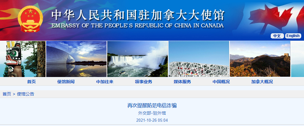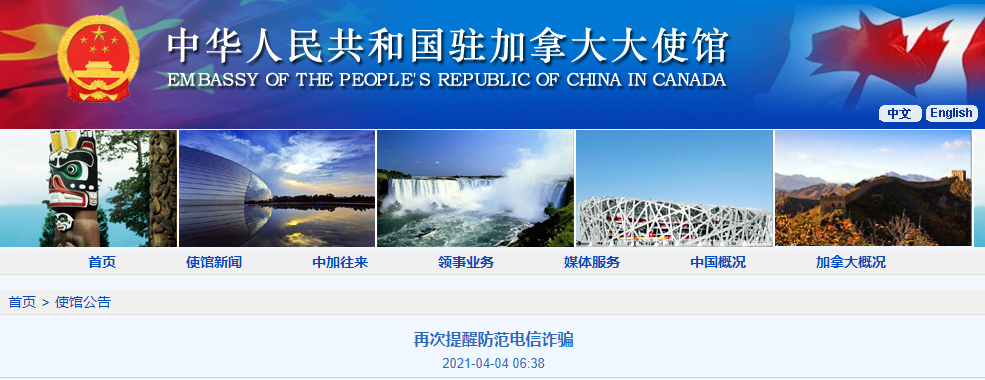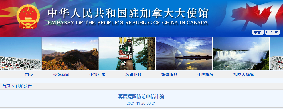 突发!中国驻加拿大大使馆急发紧急信息! !