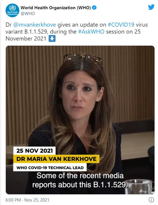 世卫组织发言人表示,变异毒株Omicron首次于11月11日被发现,现在已经是南非主要毒株,它的传播速度非常快,短短半个月已经散播世界各地——比利时已经报告了欧洲首例新变种的确诊病例,香港和以色列也相继出现首例最新变种确诊。