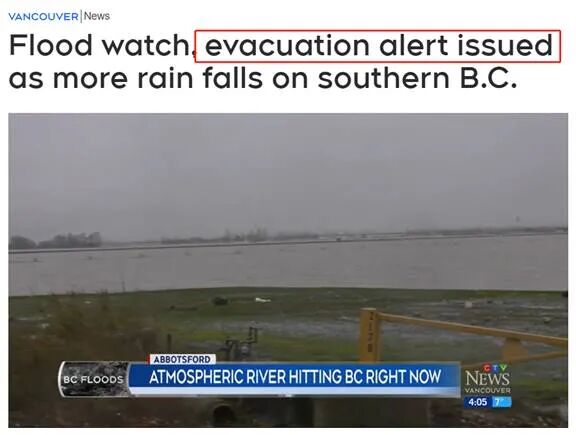 随后,BC省河流预报中心紧急向南海岸发布了洪水预警!包括重灾区阿伯茨福德的苏马斯草原!