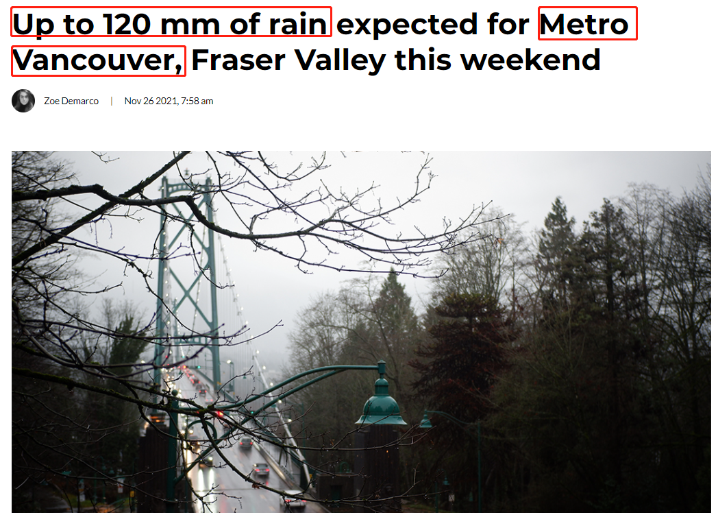 就在今天早上,加拿大环境部再次更新特殊天气预警——整个大温和菲沙河谷地区将在本周六,也就是明天,迎来另一场强降雨!