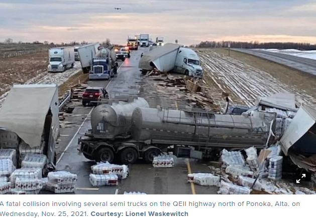 惨烈车祸!加拿大高速至少8车连撞,大货车被撞断成两节!