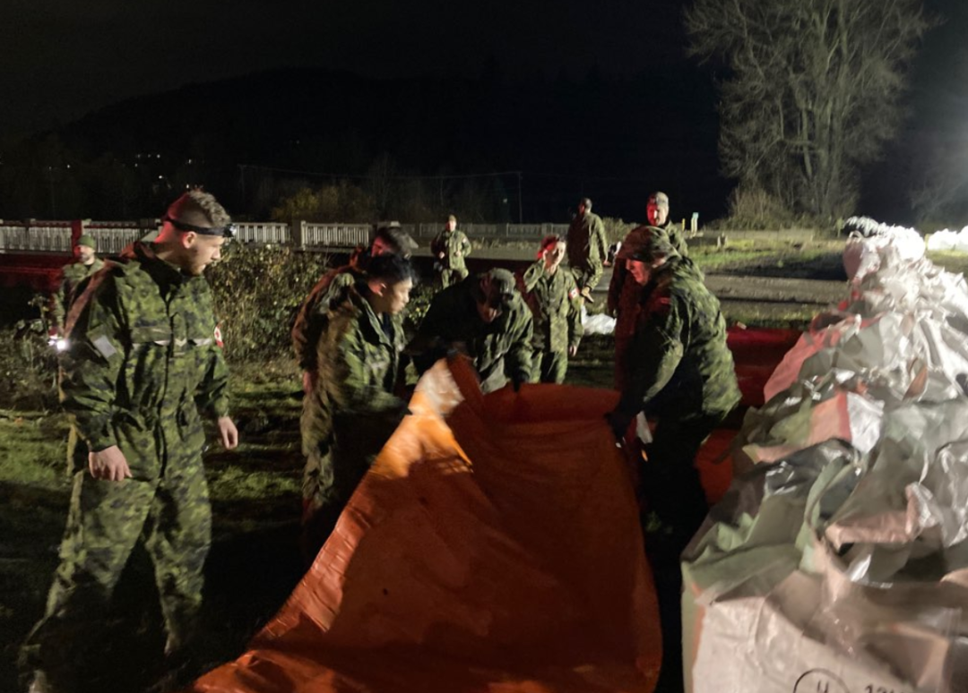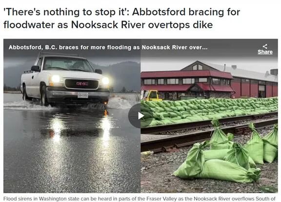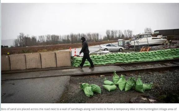菲沙河谷流域十分危险,作为上一波洪水的重灾区,阿伯茨福德的市府人员、加拿大军队彻夜工作,紧急搭建了一个“老虎坝”,希望能够阻止河水再次涌入。