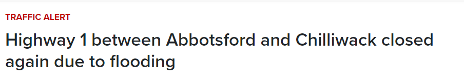 受周末降雨影响,BC省府在昨天下午5点重新关闭了1号高速公路阿伯茨福德到奇利瓦克路段!目前重开时间不清楚。