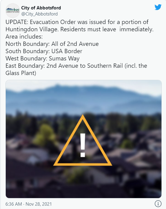 周日晚上,阿伯茨福德和汤普森-尼古拉地区已经向河流附近的居民下发了紧急疏散令!