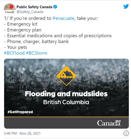 副省长兼公共安全部长迈克·法恩沃斯 (Mike Farnworth) 也证实,极端天气接连袭来,省府已经准备好了随时启动Alert Ready!
