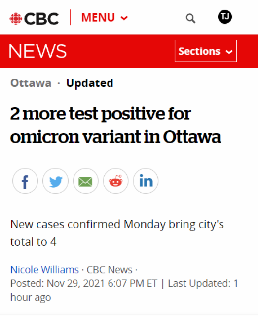 根据最新报道,安大略省在昨天确诊2例Omicron变种病例后,今天又表示,渥太华今天再次确诊两例感染者,另外卫生部门正在对另外2名安省汉密尔顿的疑似病例进行调查。