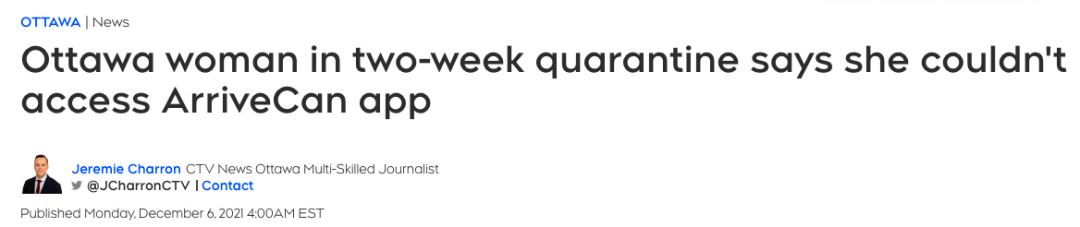 一名家住渥太华的居民罗克本-邓禄普(Rockburn-Dunlop)说,因为她在去美国的短途旅行中无法访问ArriveCan,因此不得不被强制隔离两周——“这简直像被软禁。”