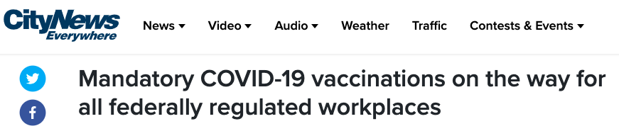 据City News报道,特鲁多政府预计将在2022年初将新冠疫苗强制接种令扩大到所有受联邦监管的工作场所。