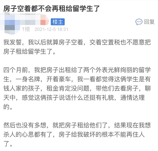 房东爆料 | 宁可交空置税都不再租给留学生!穿名牌开豪车却做出这种事...