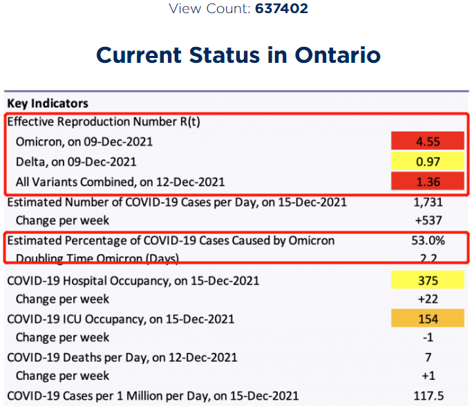 最新数据显示,安省周四的54,724次核酸检测中有7%的阳性率,是自今年5月18日以来的最高水平。另外,Omicron变种现在在安省的有效繁殖指数RT值已经飙升到4.55,也就是说,每名感染Omicron病毒的患者,可以将病毒传染给另外4.55个人。