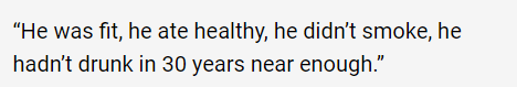 约翰说,继父有起码30年的时间不抽烟不喝酒,生活规律,饮食健康,70多岁的人身体一点毛病都没有。