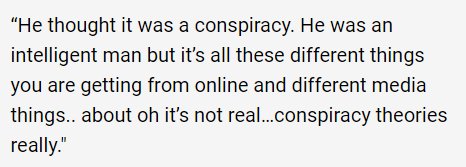 “他是个聪明人,但是总觉得疫苗其实就是个大阴谋,他就相信从网上看的那些谣言和阴谋论,而且他也特别相信自己的直觉。”