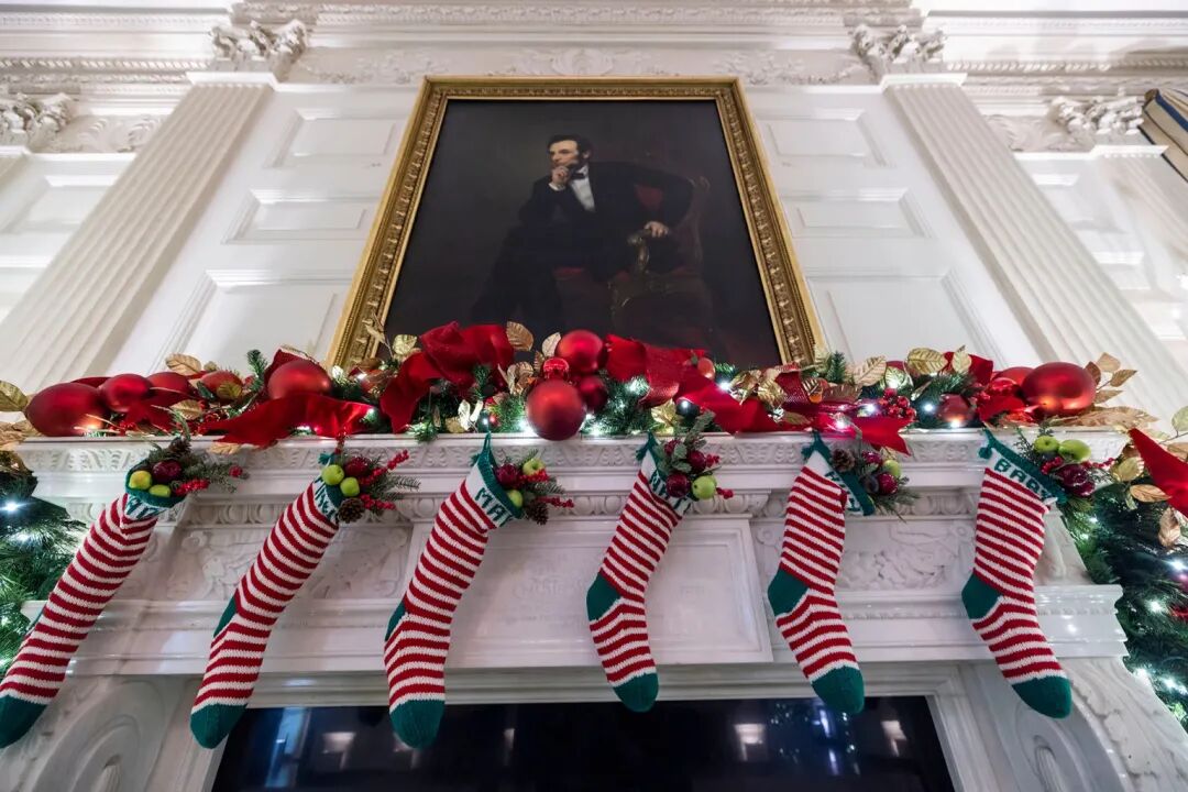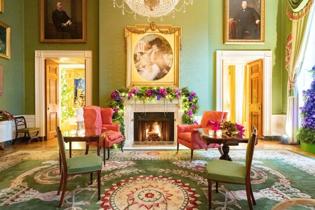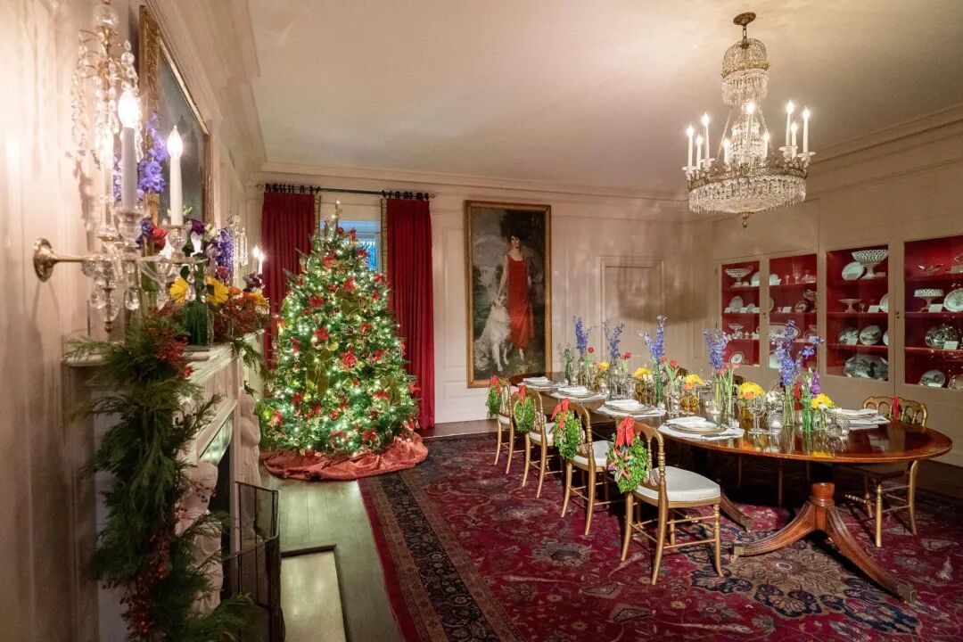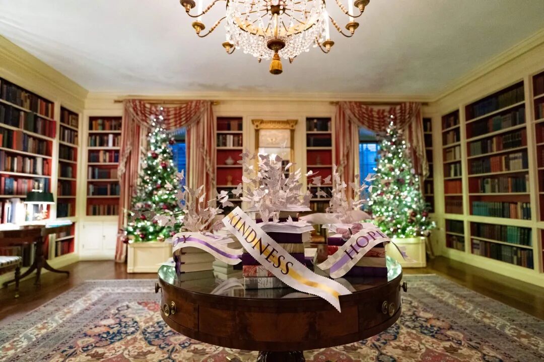 (第一夫人吉尔·拜登的“发自内心的礼物”主题意味着白宫的每个房间都专门为人们在一年中收到的不同“礼物”而设。)