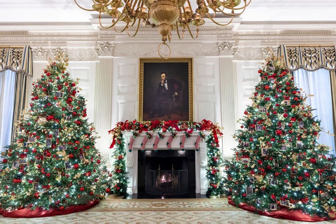 为了呼应这一主题,房间里的圣诞树上挂着许多前第一家庭的照片。