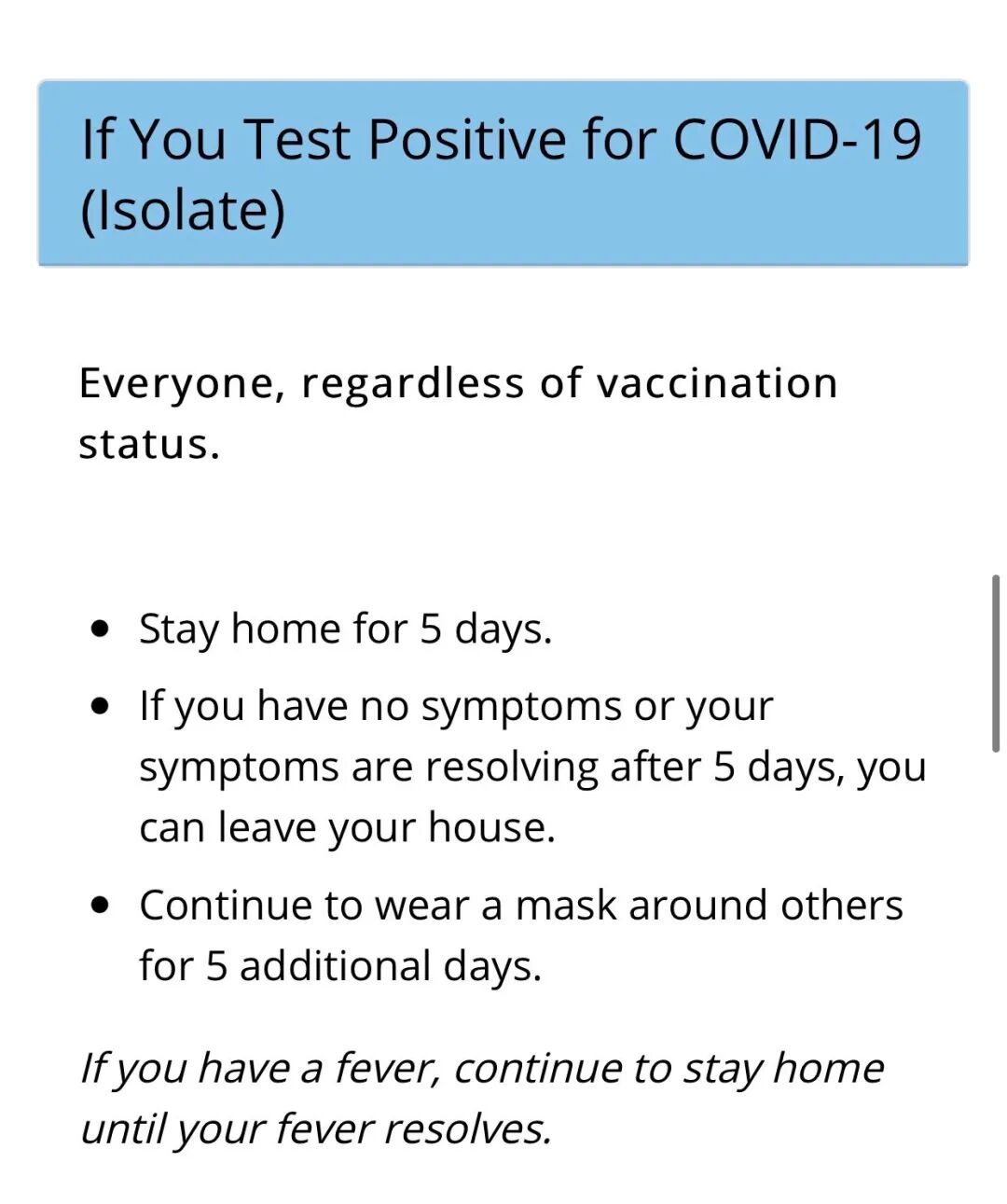 以下是CDC周一最新发布的隔离指南的细则:一、如果新冠检测呈阳性无论疫苗接种状态如何:- 在家隔离5天。
