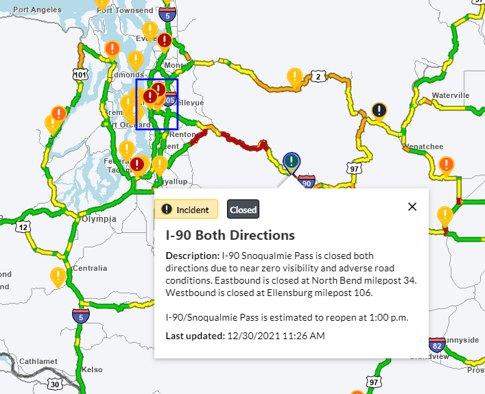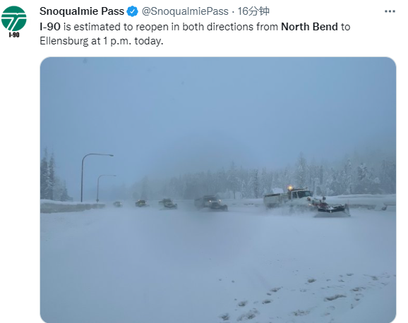 [西雅图新闻]I-90 Snoqualmie Pass 近80英里高速关闭!阿拉斯加航空取消20%西雅图起飞航班