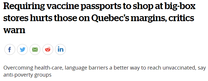 从昨天(24日开始)魁北克省Costco,沃尔玛,Canadian Tire等大型商店要求顾客持疫苗证明才能入店的新规生效!
