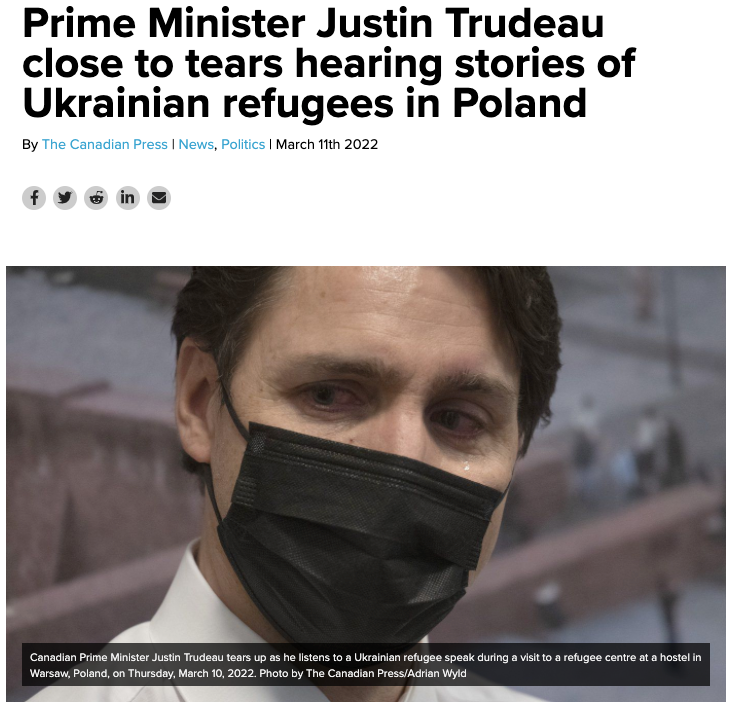 加拿大总理特鲁多本周到欧洲4国访问,最后一站到波兰特意看望遭受战火影响而逃离家园的乌克兰难民,但听到难民们叙说的悲惨故事后,特鲁多忍不住流下了眼泪。
