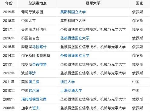ACM国际大学生程序设计竞赛的 冠军几乎都被俄罗斯包揽了