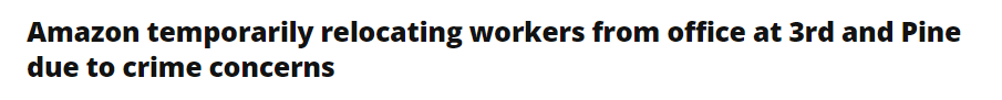 “鉴于近期在3rd/Pine附近发生的事件,我们正在为目前该地点工作的员工提供其他地方的替代办公空间,我们希望情况会有所改善,并且在安全的情况下将员工带回这里。”