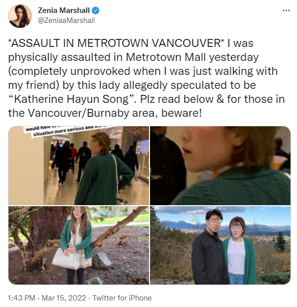 [温哥华新闻]温哥华女星商场遇袭! 亚裔嫌犯疑似UBC高材生 曾怒踹八旬老人 多次犯案 臭名昭著