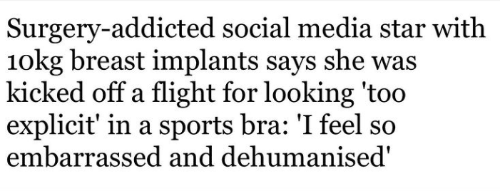 [多伦多新闻]辣眼睛!多伦多25岁女网红被赶下飞机!只因有10KG重的巨乳!网友吵翻!