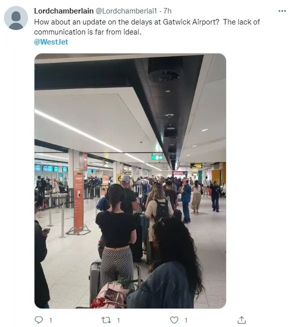 无独有偶,位于英国的Gatwick机场,也有大约300人滞留,他们原本计划搭乘Westjet的航班返回多伦多。