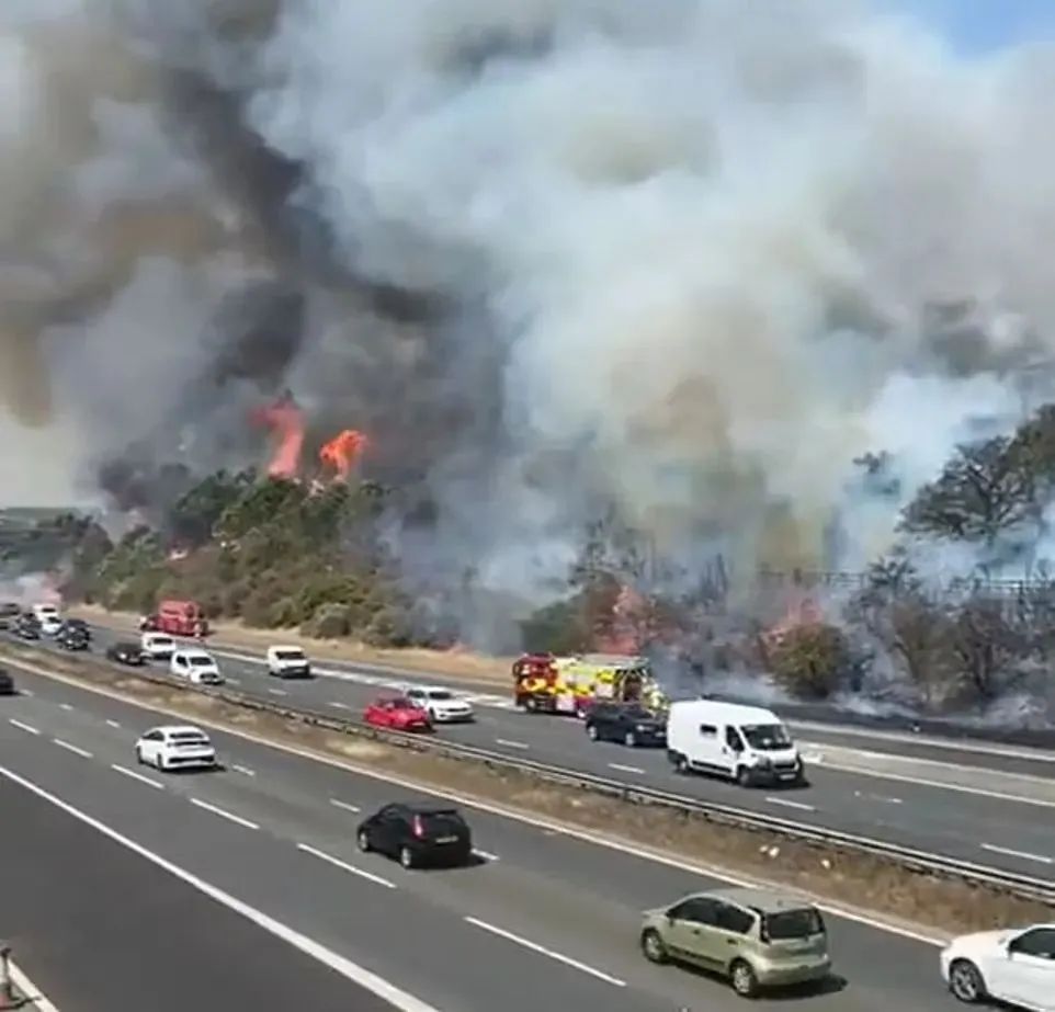 更有些是高速公路旁边绿化带和农地起火,几米高的刺鼻浓烟对行驶的车辆都造成了严重的影响。