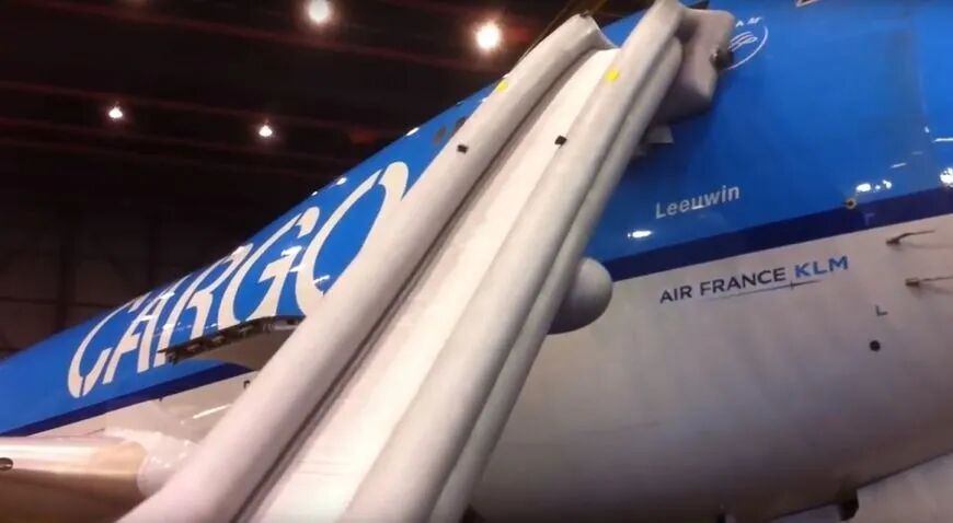 据菲律宾媒体指出,全机成功生还的关键在于,机组人员非常果断地打开了逃生用的充气滑梯,这使得大多数人在未遭到严重撞击前就成功逃了出来。 示意图