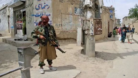 塔利班人员随后赶到现场,全副武装穿梭在“血场”,搜集证据,调查这场爆炸案件。