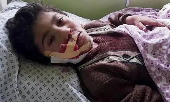 也有孩子伤得更重,血流不止,枕头都是未干的血迹,两眼无神,却透着淡淡的悲伤和绝望;